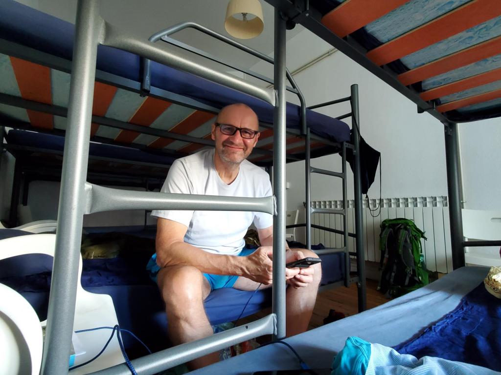 After a walk of only 22 km we secured a spot at the Hotel Bezana Lago. Basic. A bit noisy and dark.