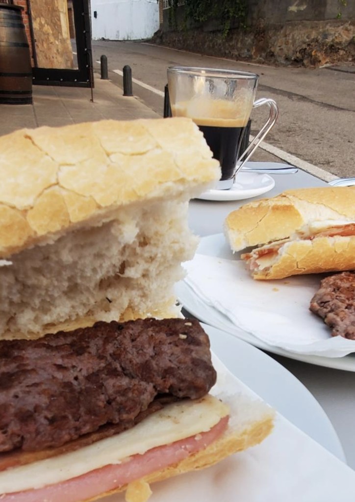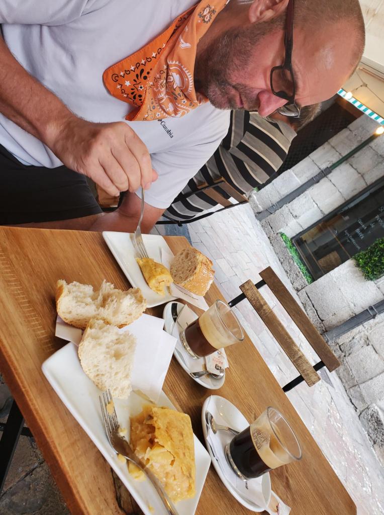 Our second highlight of the day was breakfast. For 8 euros, we had two sandwiches and two coffees. But these were not just any sandwiches. Each sandwich was filled with baked ham, cured ham, cheese, an egg, and a hamburger patty. If you think that sounds like a bit too much, you’d be wrong!