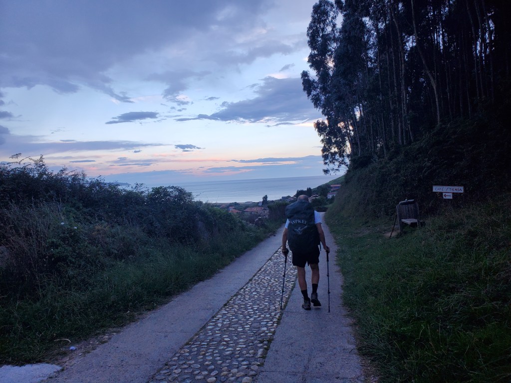 The day started out well as the Old Seamen in Celorio had an automatic espresso machine to kick off the day. The morning featured more scenic views and sunrises. And then with three hours hiking under our belts we arrived in Nueva as coffee shops and bakeries were just opening. Three hours hiking is just about the limit of what I can do on an empty stomach.