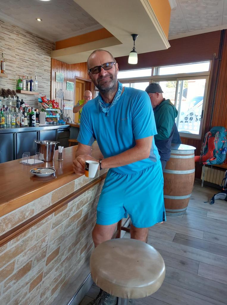 I am embarrassed to say that I was the first to wake up this morning (thus disturbing everyone at 6:18 a.m.) It was a much less hilly path than yesterday. And much more collegial. Helena (perhaps not wisely) joined us straight out of the albergue and we marched on in companiable chatter. An hour or two into our walk we spotted a cafe that was open, peopled with several pilgrims and ready for business. This was already the most social we had seen things on this camino. One of the patrons was a pilgrim from Moose Factory Canada near James Bay. I did actually claim that there was no such place but he insisted that there was.