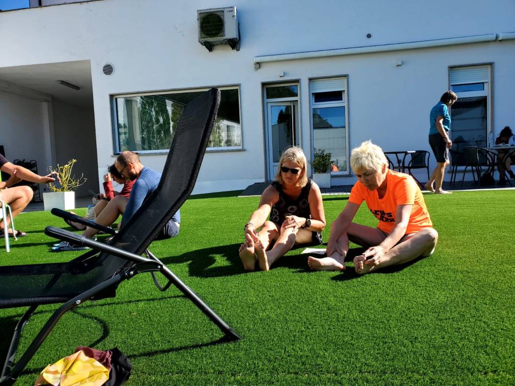 Stretching is an important part of every day. Walk, stretch, drink water, have a snack. We average 4 to 5 km an hour but there’s a lot to pack in.