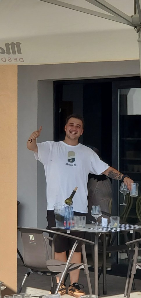 Showered and freshened up in my clean (though casual) clothes I proceeded next door to what looked like a delicious restaurant, the El Chiqui. I stood behind a Spanish family that were quickly shown to a table. After waiting a few minutes outside, I proceeded inside. Only to be told by a very embarrassed waiter that they were full. Given the nearly empty room, and the Spanish customers that continued to be shown to their tables, this “fullness” was only the case for customers with bad hair and bad shoes. At his suggestion, we proceeded down the road and had a phenomenal meal in the sunshine at the A Mares restaurant. Our waiter was pleasant and the food was excellent. Their loss.