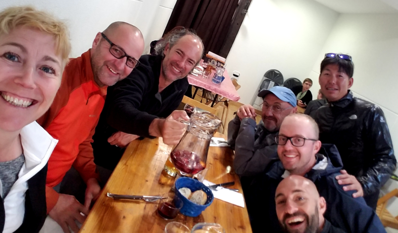 This consisted of hoisting a glass and cheering in all the people who looked sweaty and tired coming down the hill. No photos were taken of this as we were busy hoisting and cheering, but I think we brightened the day of a lot of tired folks.