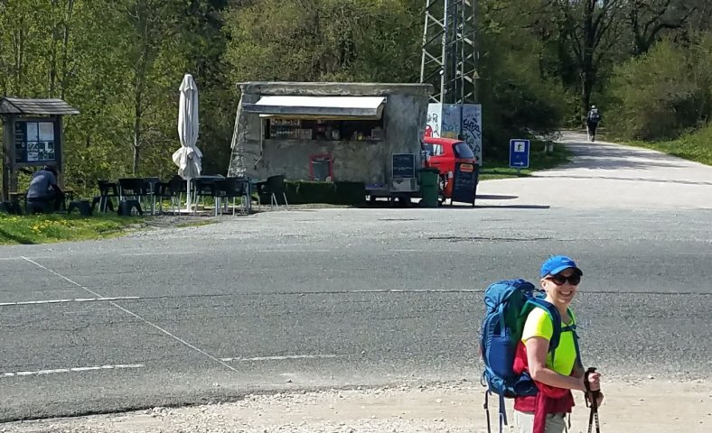 A little while into the hike, Robby remembered the words of yesterday’s Supermercado host. “Be careful with the Chorizo, it will make its mark.” The actual words were in French, but you catch my drift. Robby soon felt the full effects of his warning. Luckily, after about 3 km, we came upon La Parada de Zuriain: espressos, servicios, perfecto! The place was packed with pelegrinos looking for a shot of espresso and a quick breakfast. We were saved!