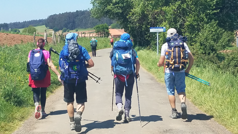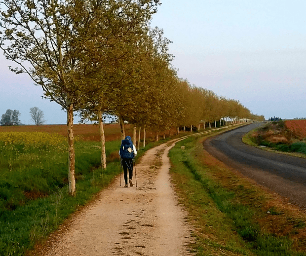 Coming out of Leon you have the choice of a long flat route next to the N120 or a long flat route between fields. We chose the latter, and passed the day sharing family updates and discussing French air and rail strikes.