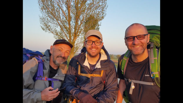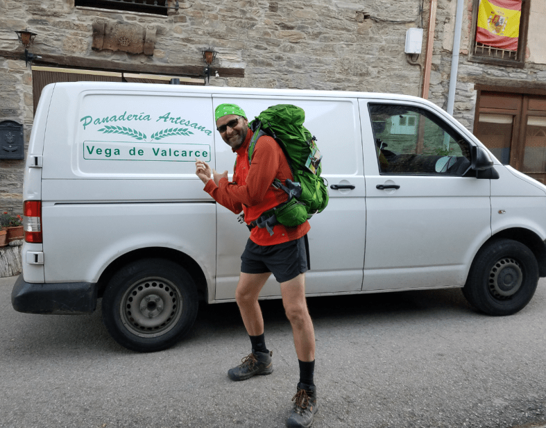 The start of the walk was quite cold. Luckily we arrived in the neighbouring village just after the bread truck, which provided both warm bread and the impetus Robby needed to start another day of “Baker Man.”