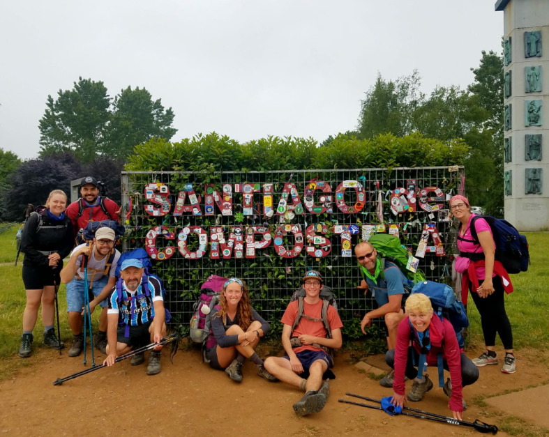We then began the 1.5 hour queue for our certificates. Some pilgrims were a bit put out by the wait. Our team was actually pretty excited about the opportunity to take off their packs and shoes and NOT WALK!