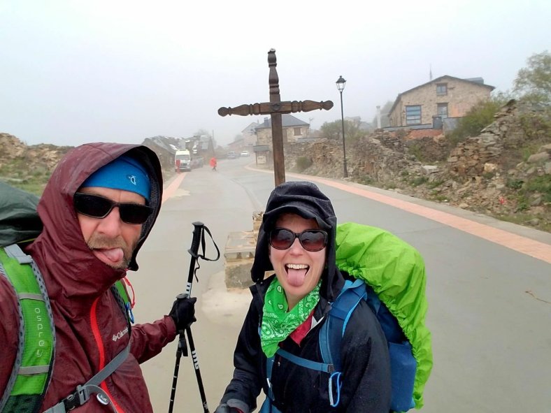 Regardless, we pushed off in the wind and clouds to pass the Cruz de Ferro. At 1500 meters (about 5000 ft), it is the highest point in the journey and is for many the purpose of their pilgrimage. And where we said goodbye to Joan.